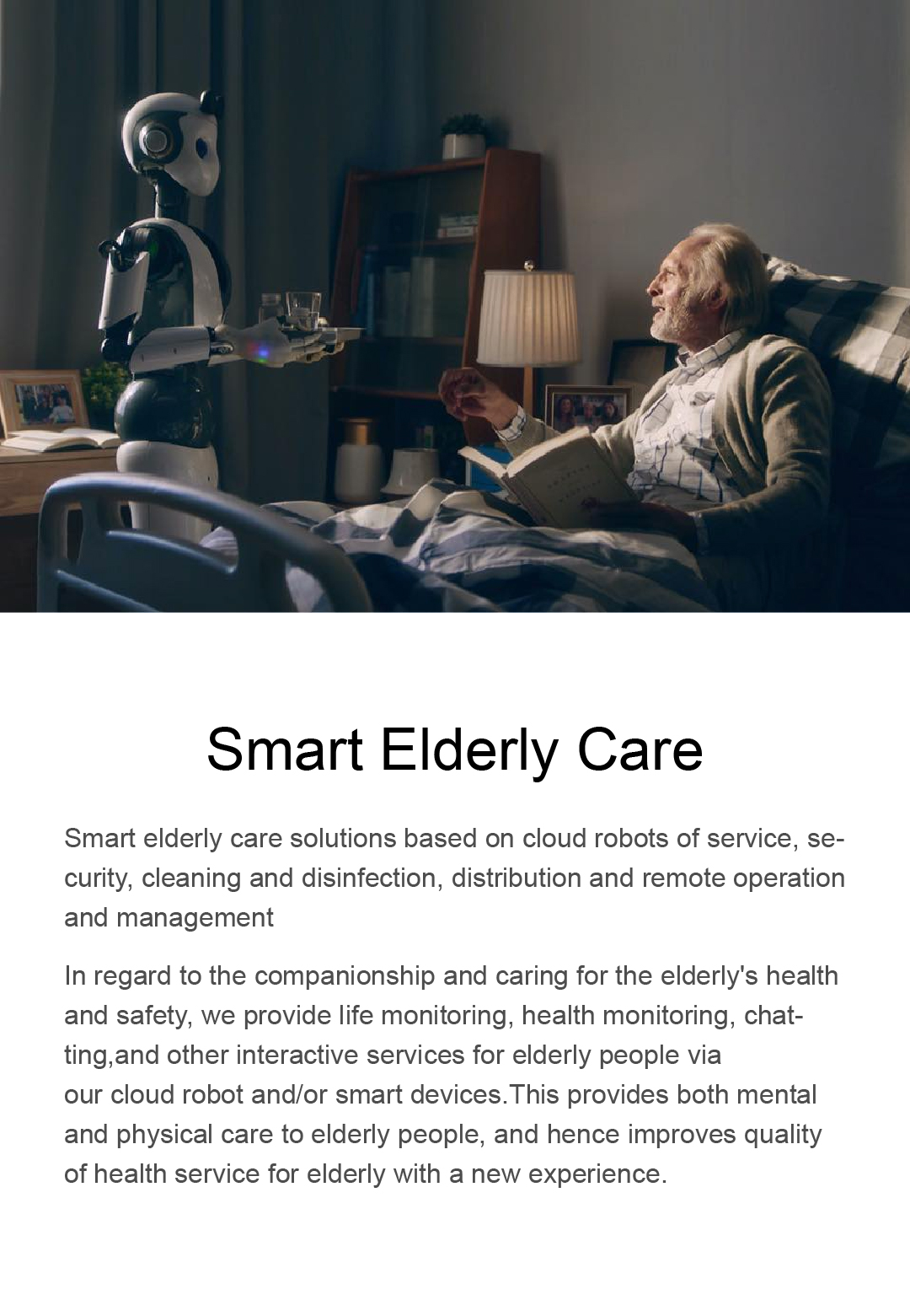 our cloud robot and/or smart devices.This provides both mental and physical care to elderly